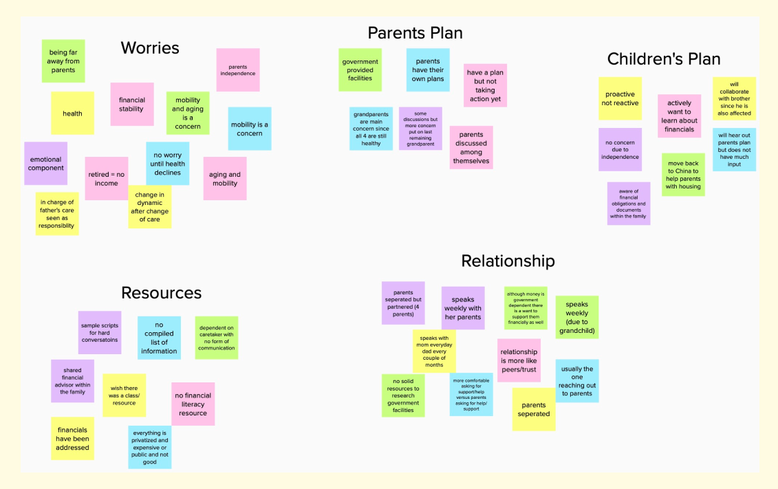 In user interviews, I got to ask adult children about their relationship with their parents as well as their thoughts on future planning.