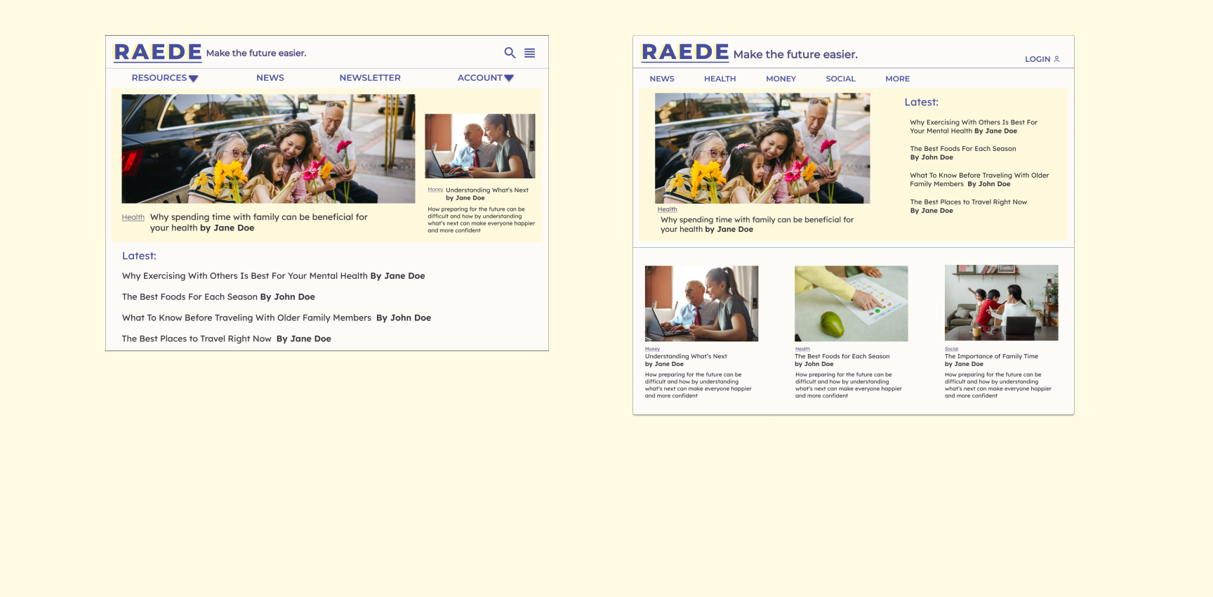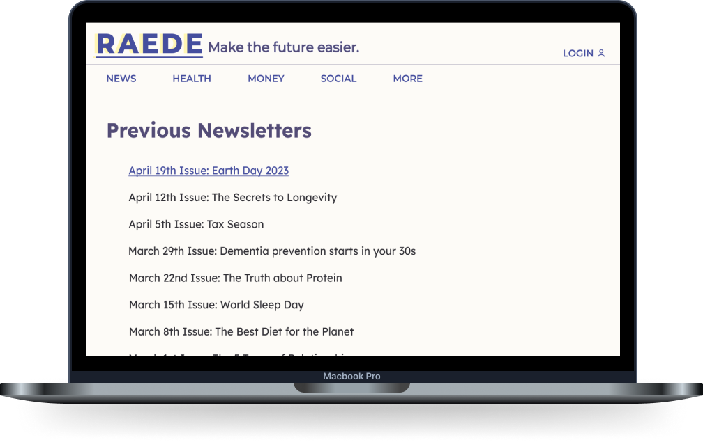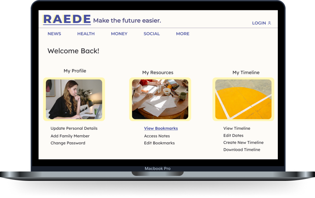 Raede is a platform that allows users to learn about planning for the future as well as customize their experience.