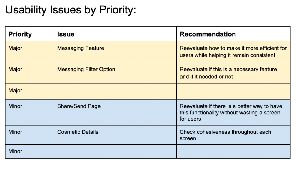 From the first round of testing, the main takeaway was to fix the messaging feature since most testers had concerns about how the feature would be properly used.