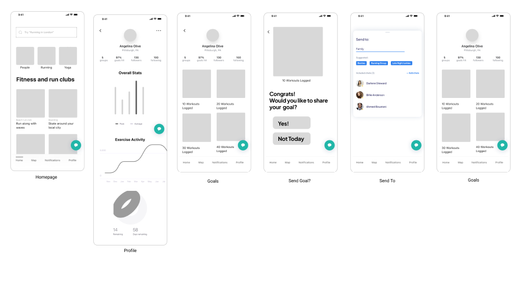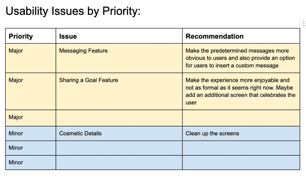 From the second round of testing, the main concern was the way the predetermined messages were shown as an option for users. Another concern was making the experience of sharing a goal more enjoyable for the user